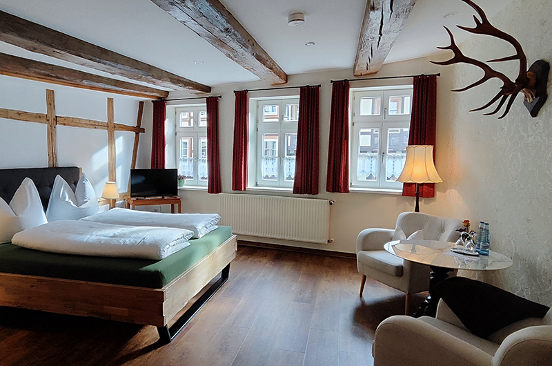 Unser Haus befindet sich im Herzen von Wernigerode. Beginnen Sie direkt vor unserer Tür Ihren Bummel durch die historische Altstadt. Parkplätze für Pkw und Motorrad können Sie bei Bedarf zubuchen.