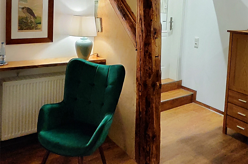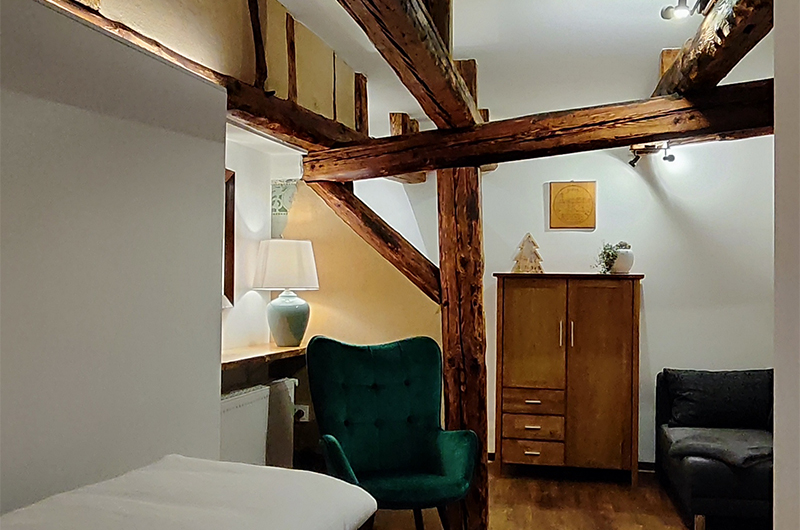 Das Zimmer ist mit einem gemütlichen Bett und Sessel ausgestattet. Zusätzlich ist noch ein Sofa vorhanden, welches auch als Aufbettungsmöglichkeit für eine weitere Person genutzt werden kann.